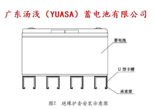 在電池抗震鐵架每層鐵架構件(承重梁)與電池殼體觸摸部分上襯以塑料絕緣護套,將金屬承重梁全包裹,如圖2所示,其作用便是將電池與金屬電池架之間離隔,防止漏下的腐蝕性液體將電池與架間